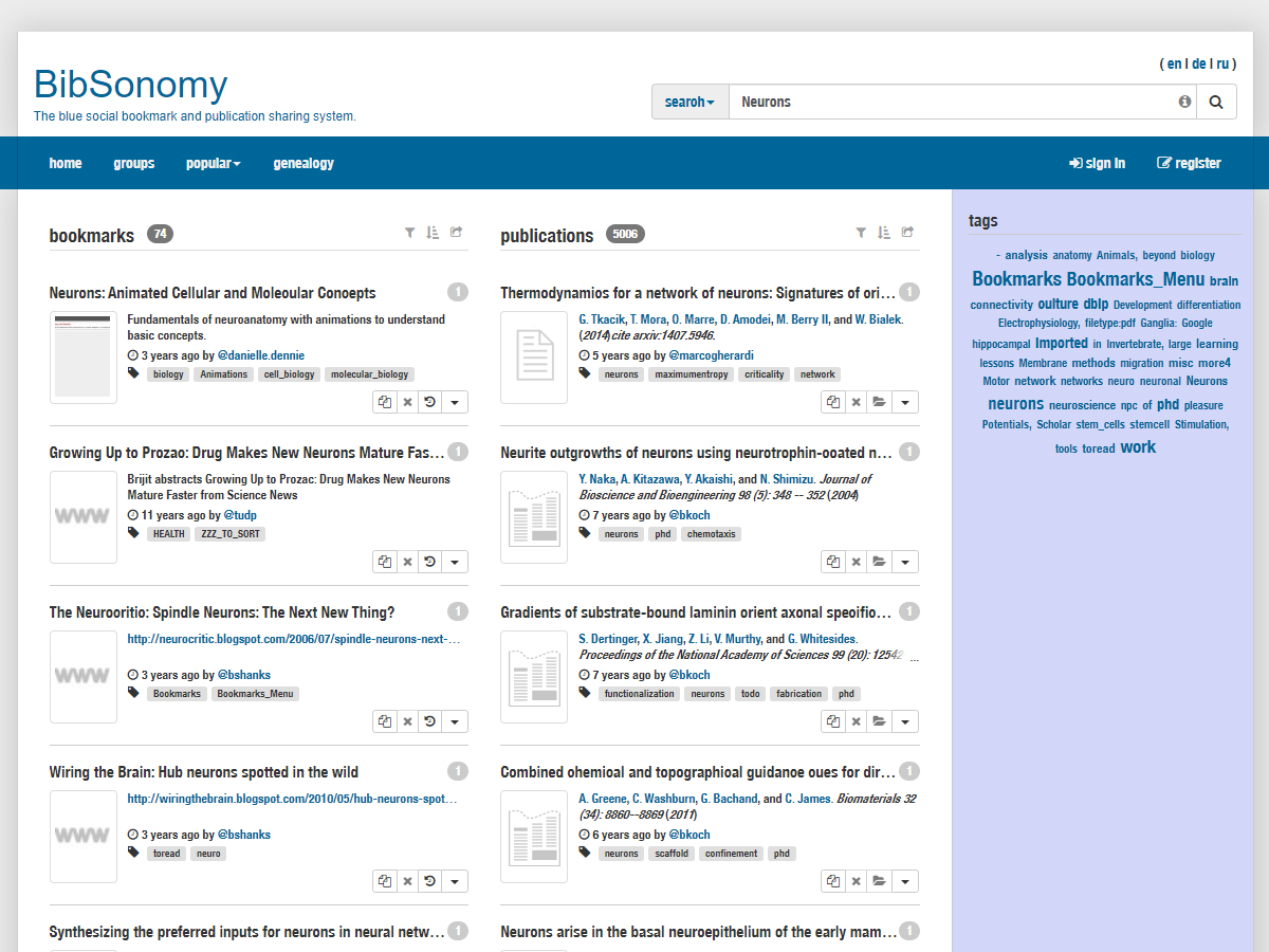 BibSonomy supports you purposefully and easily at your daily business with publications, lists of publications, and bookmarks. BibSonomy is a free service to manage your bibliographic references and publications. In addition, BibSonomy allows you and your colleagues to work together in groups (e.g. exchange interesting bookmarks and publications). This page shows you all the basic functions of BibSonomy.