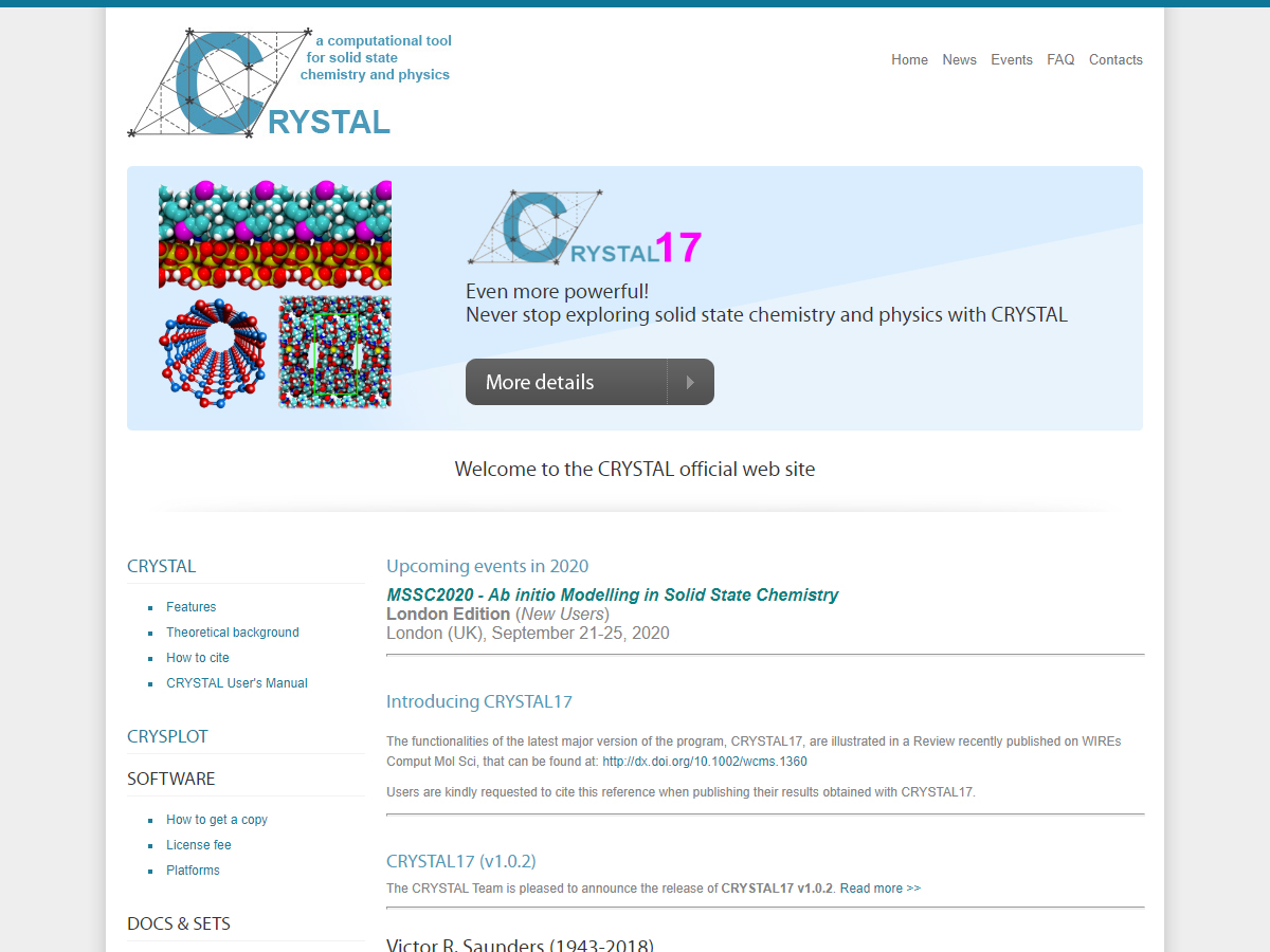 Quantum chemistry program to describe molecules, polymers, surfaces, and solids. Major strength is the density functional theory across Jacobs ladder (LDA to DHDF) that can be seamlessly applied to zero- to three-dimensional systems.