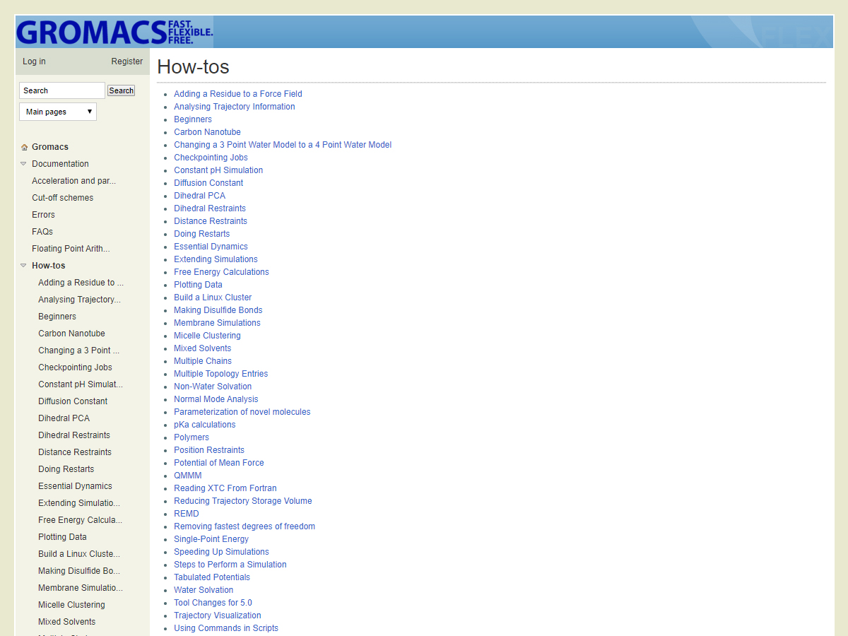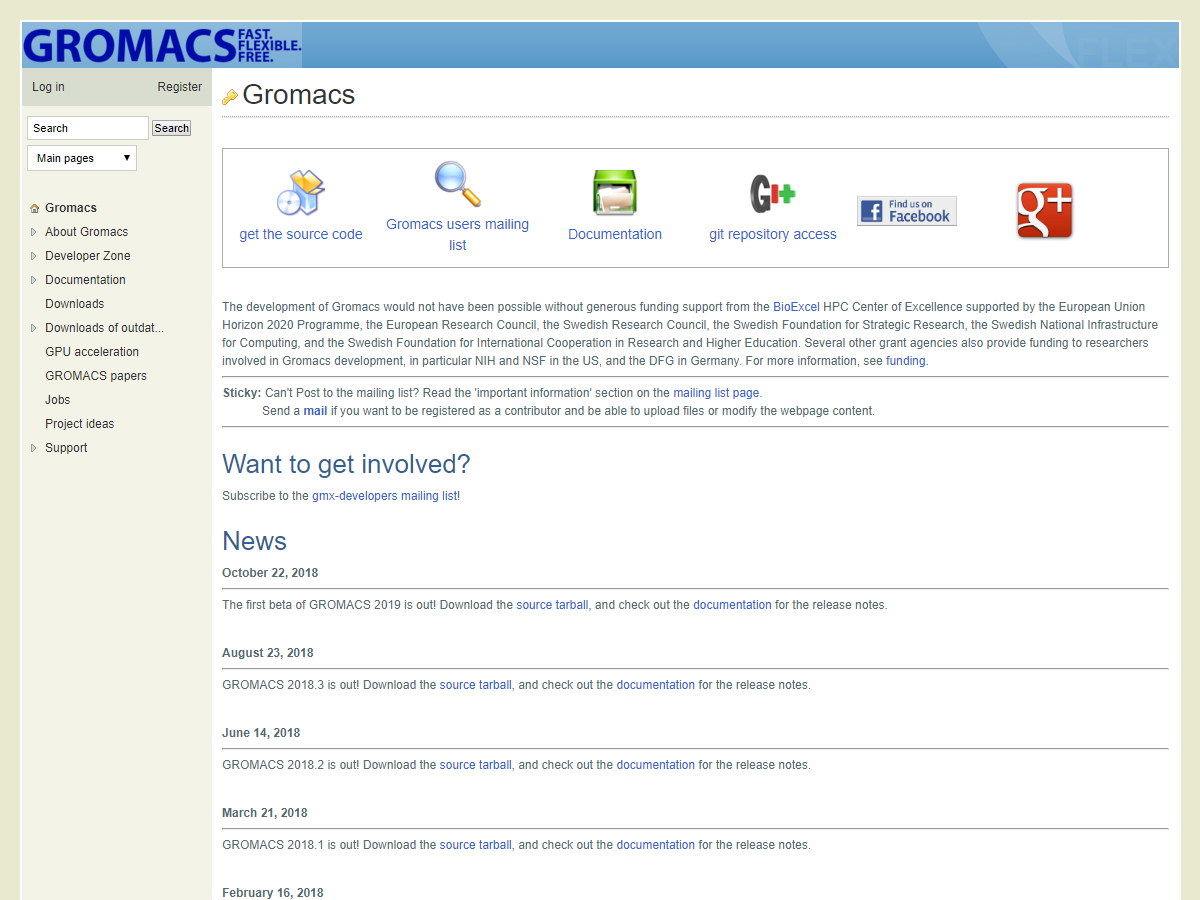 GROningen MAchine for Chemical Simulations (GROMACS) is a molecular dynamics package mainly designed for simulations of proteins, lipids, and nucleic acids. It was originally developed in the Biophysical Chemistry department of the University of Groningen and is now maintained by contributors in universities and research centers worldwide. GROMACS is one of the fastest and most popular software packages available and can run on central processing units (CPUs) and graphics processing units (GPUs). It is free, open-source software released under the GNU General Public License (GPL),[3] and starting with version 4.6, the GNU Lesser General Public License (LGPL).