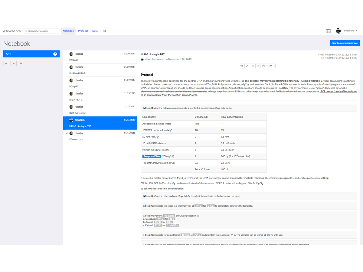 Hivebench is an electronic lab notebook created by scientists for scientists. It is meant to help you prepare, conduct, and analyze experiments all in one place. Hivebench improves the content management (protocols, experiments, results, and more) in order to facilitate its utilisation by users. This platform allows users to collaborate and share with co-workers. This tool uses cloud computing technologies to secure data and uses the secure Amazon Web Service (AWS) technology to store them. Hivebench was set to be integrated into the existing Research Data Management portfolio maintained by Elsevier.