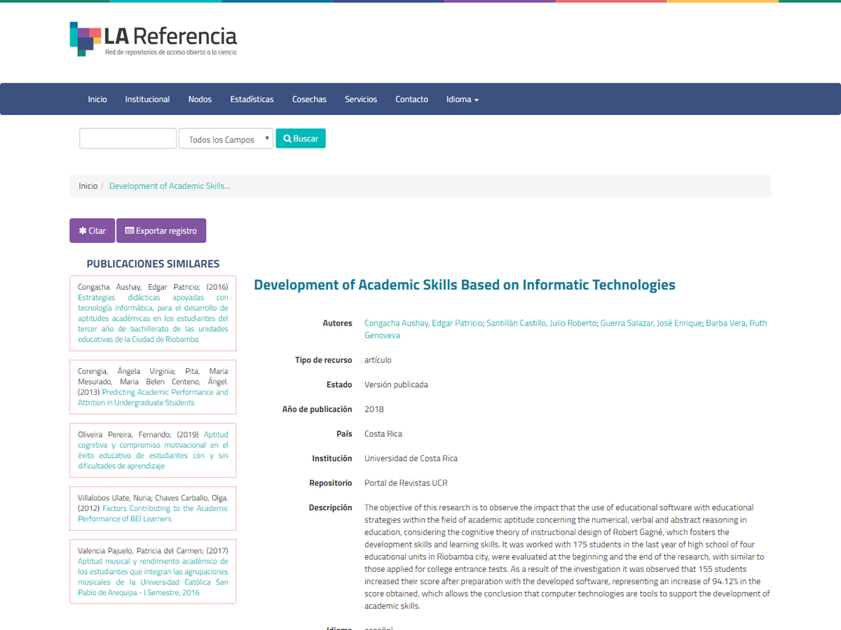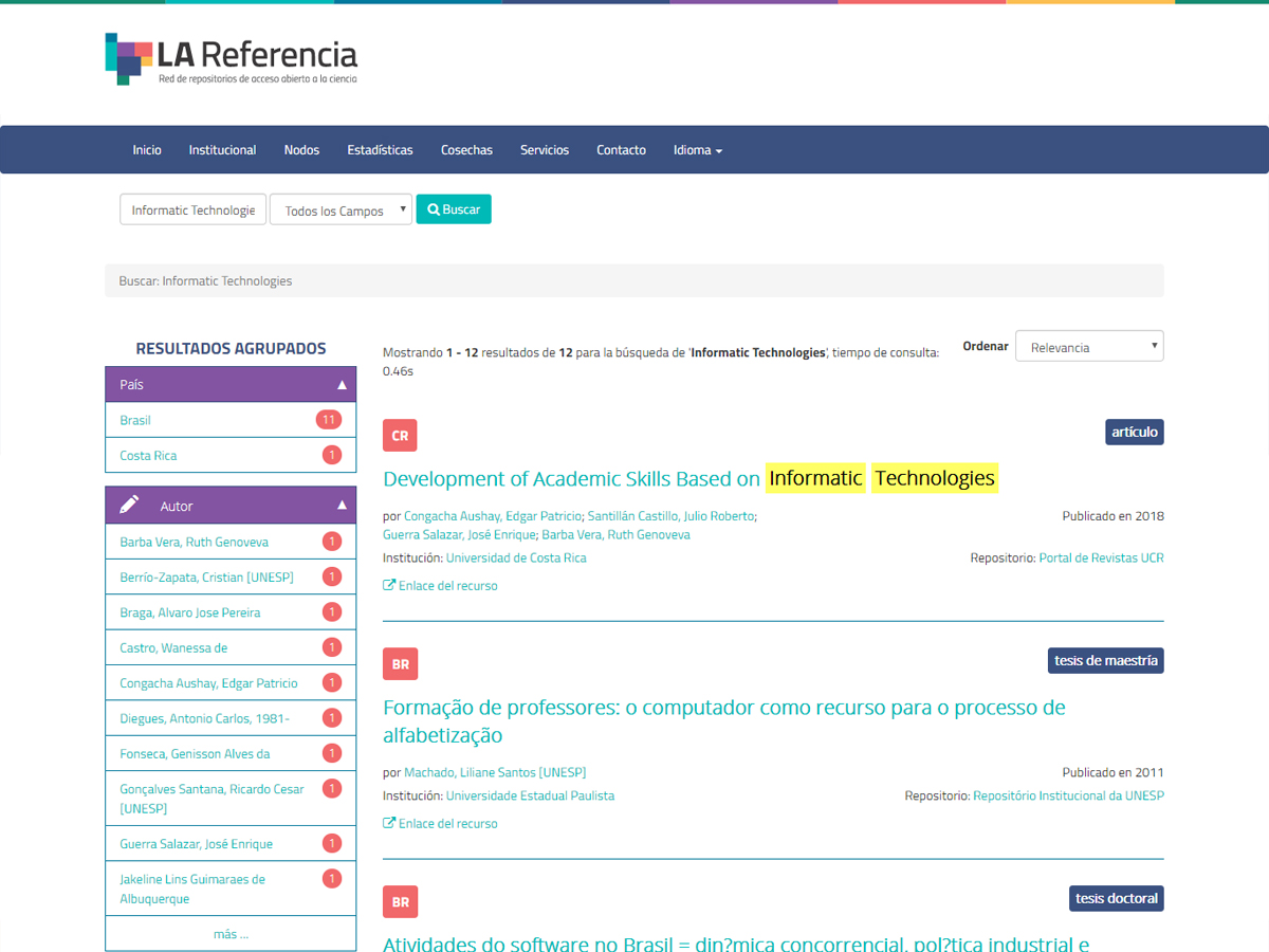 It supports national Open Access strategies in Latin America, through a platform with interoperability standards, sharing, and visibility to the scientific production generated in higher education and scientific research institutions.