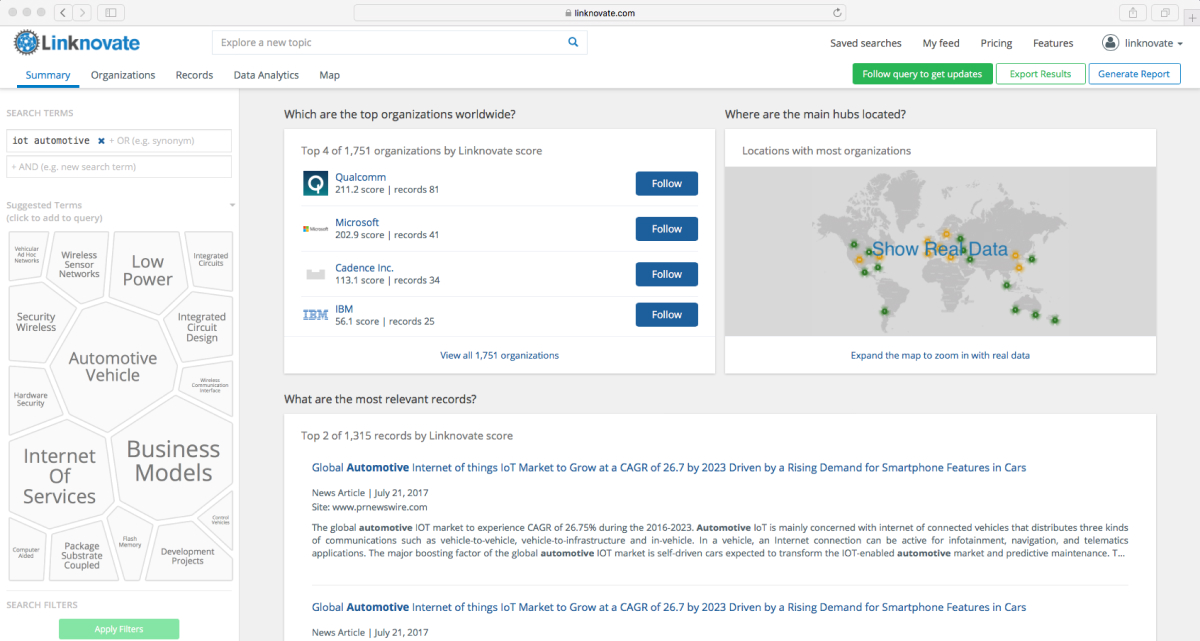 Linknovate analyzes millions of data sources to help you track everything important.