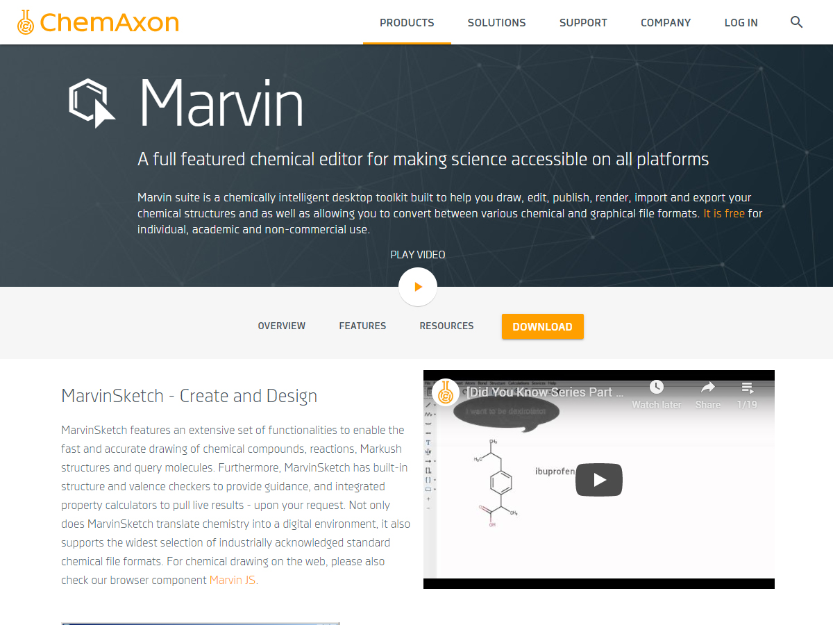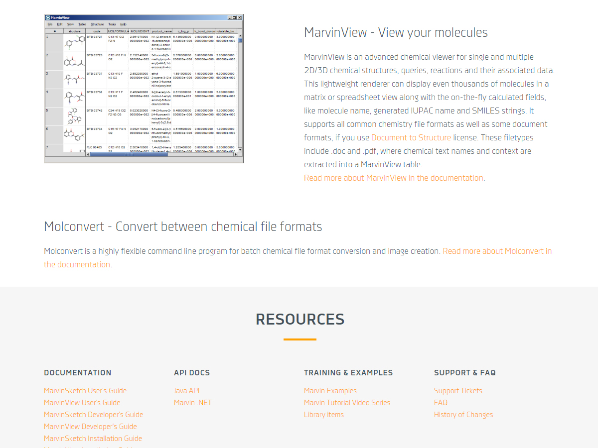 The first ChemAxon software product was Marvin, a chemical editor. Its first version was released in January of 1999. Marvin suite is a chemically intelligent desktop toolkit built to help you draw, edit, publish, render, import and export your chemical structures and as well as allowing you to convert between various chemical and graphical file formats. It is free for individual, academic and non-commercial use.