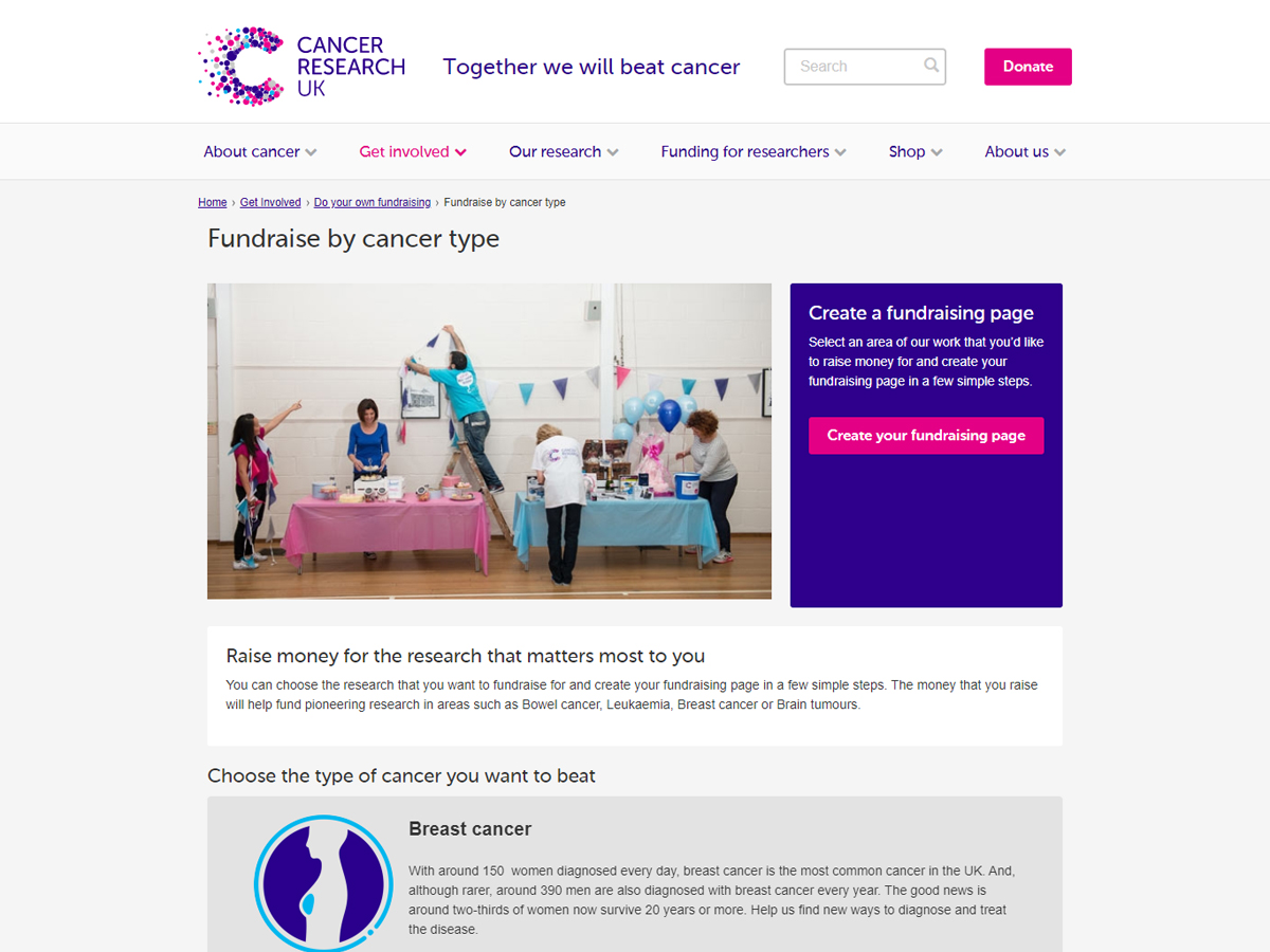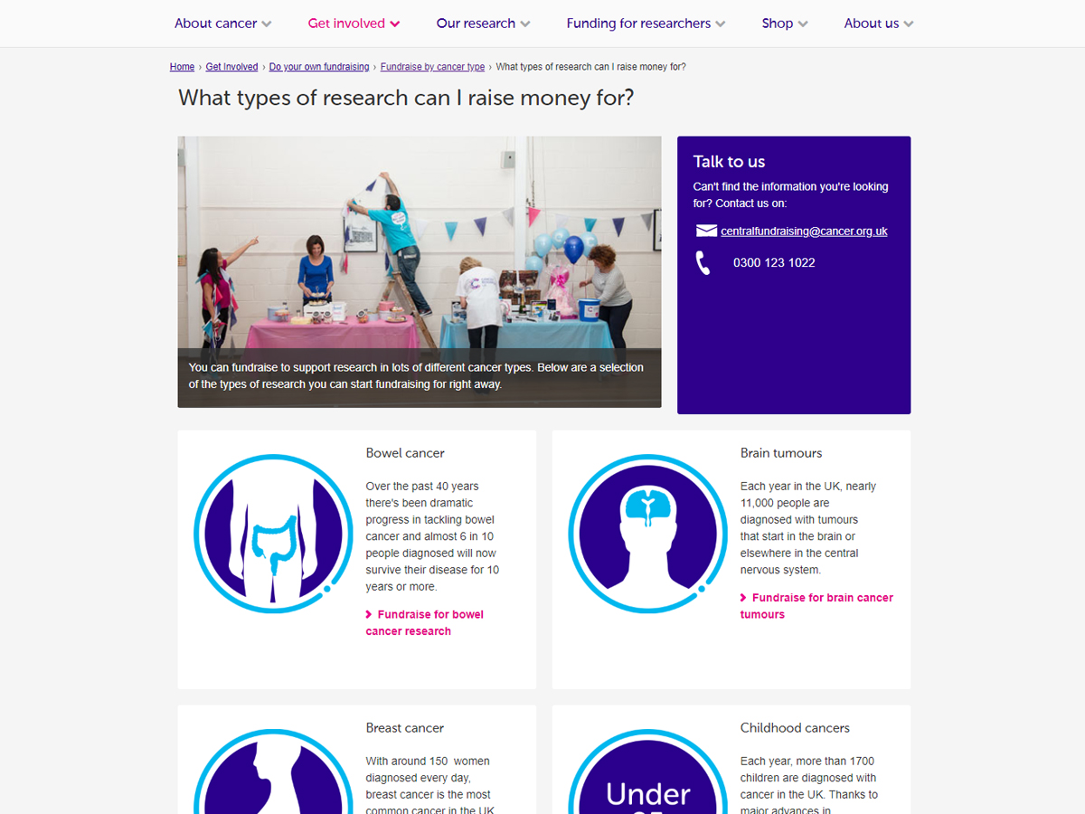 The website allows users to browse a variety of projects funded by Cancer Research UK, so that rather than giving to an organisation as a whole, donors can choose exactly where their money is invested. Each page explains the disease each team is aiming to treat, and how it aims to do so. The pages then provide donors with feedback on the impact their donations are having.