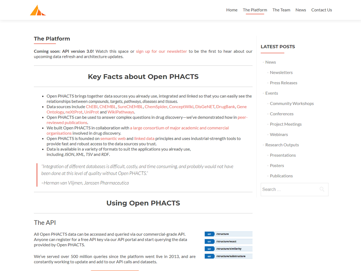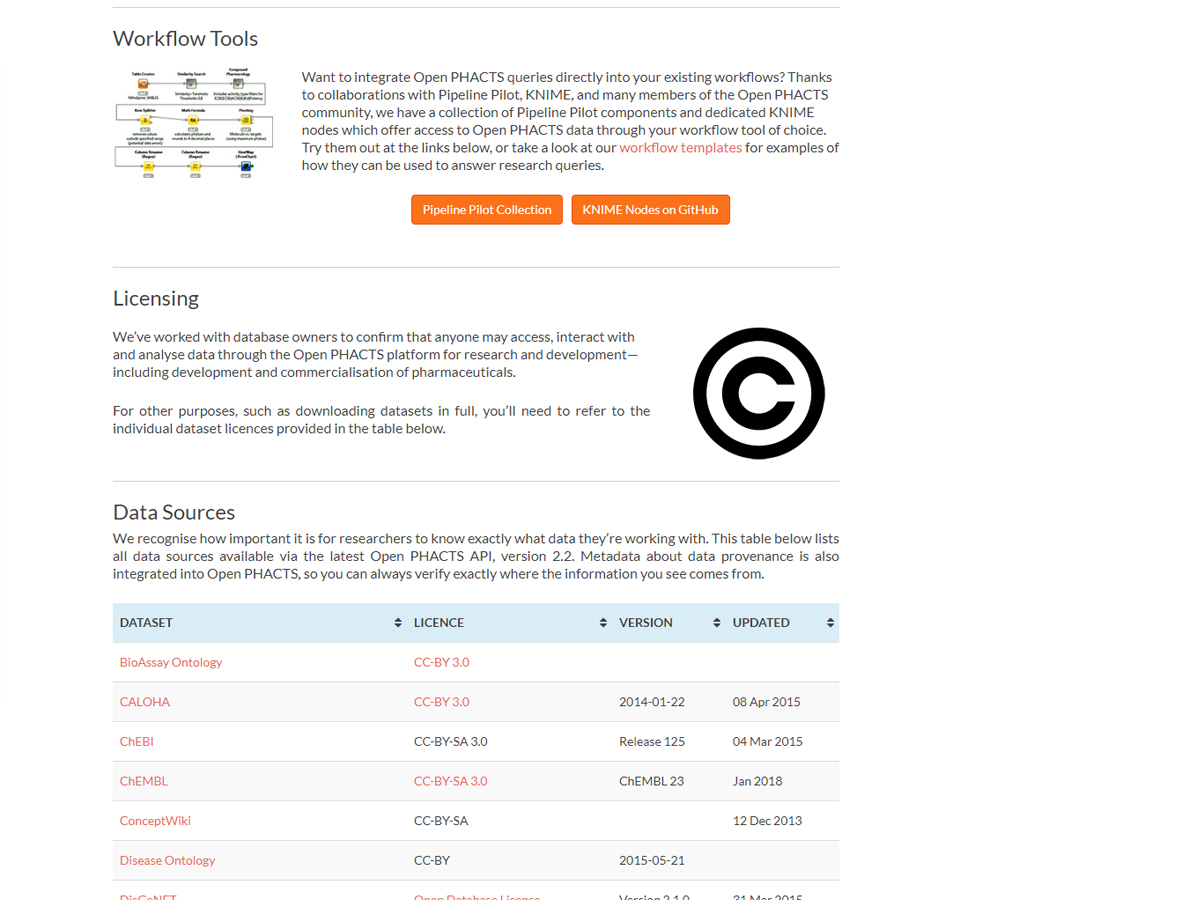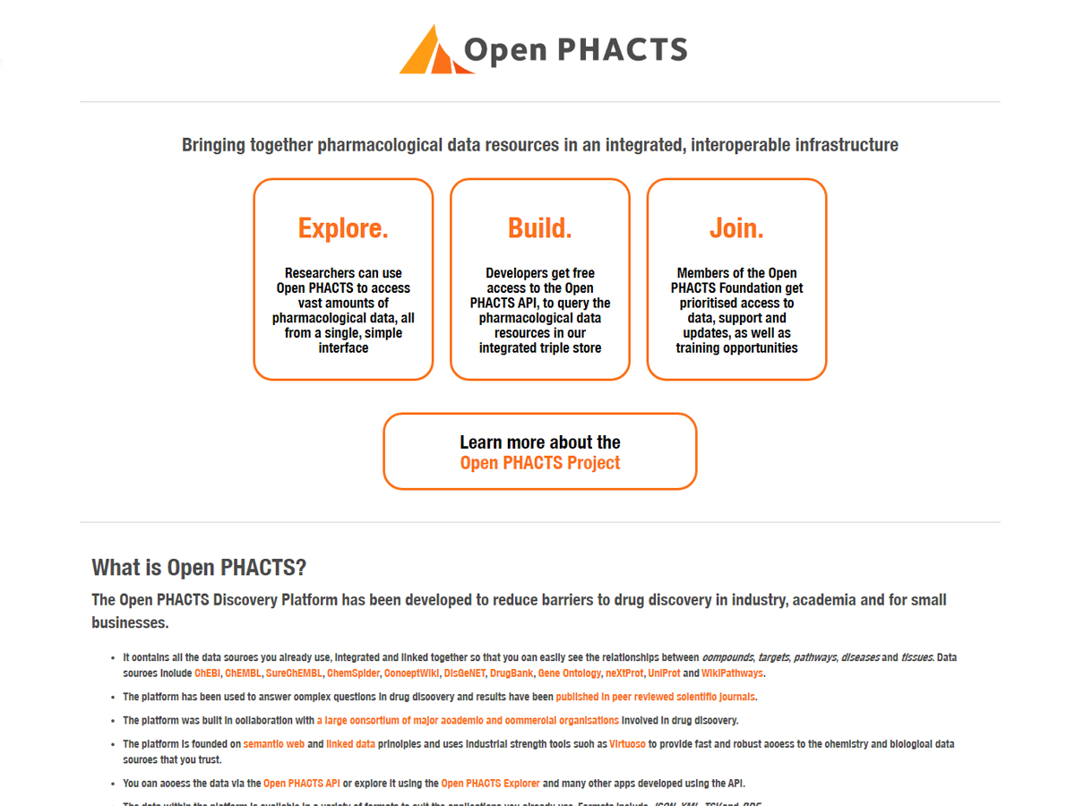 This semantic integration hub addresses key bottlenecks in small molecule drug discovery: disparate information sources, lack of standards and shared concept identifiers, guided by well-defined research questions assembled from participating drug discovery teams.
