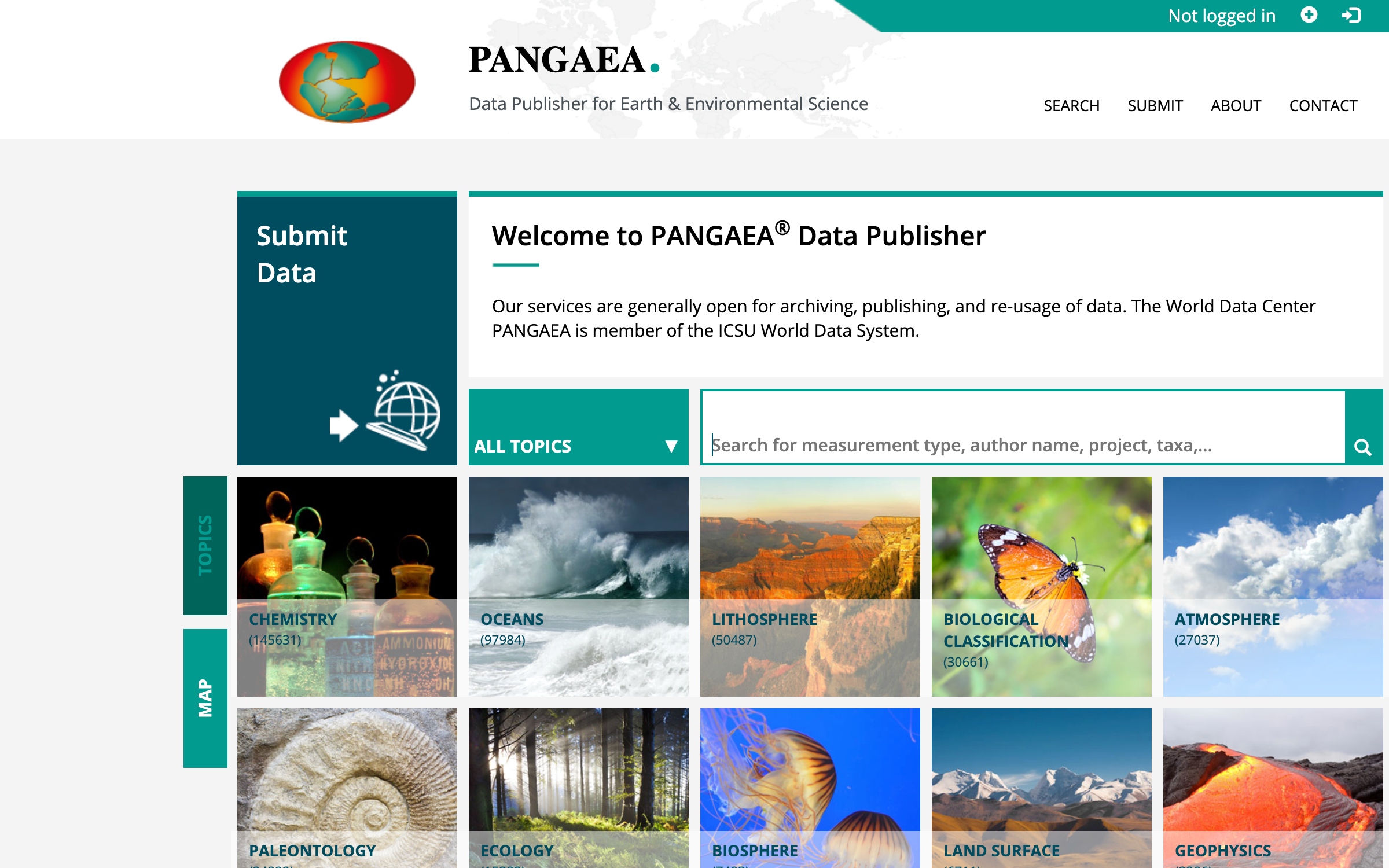 A digital data library and a data publisher for earth system science. Data can be georeferenced in time (date/time or geological age) and space (latitude, longitude, depth/height).