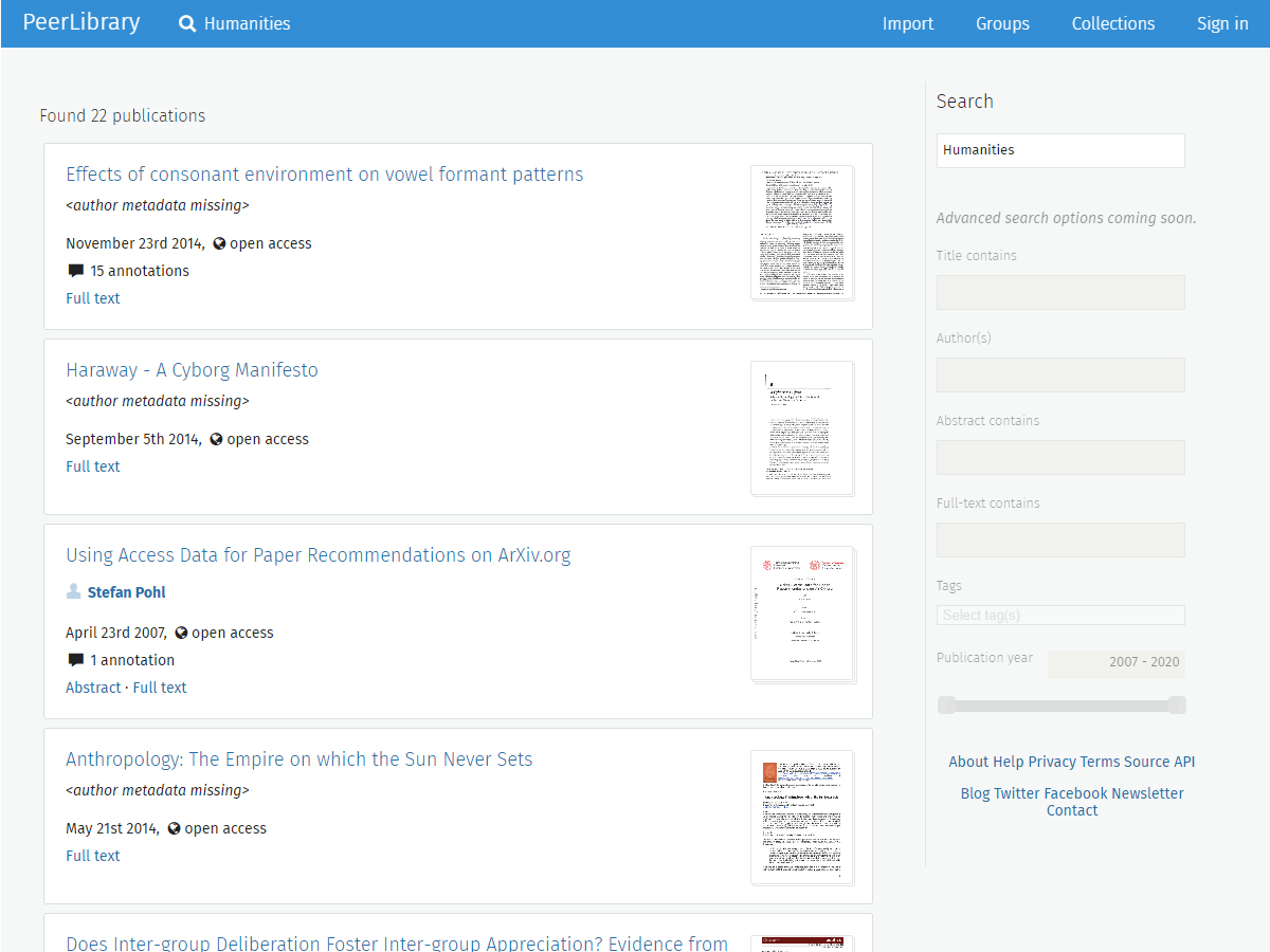 PeerLibrary is an free software project developing a collaborative online community where scholars and researchers can discover, read, and discuss scholarly literature all within one site. This project focuses on expediting access to publications, enabling public recordings of analysis and insights on said publications, and encouraging collaboration and openness in the development of science.