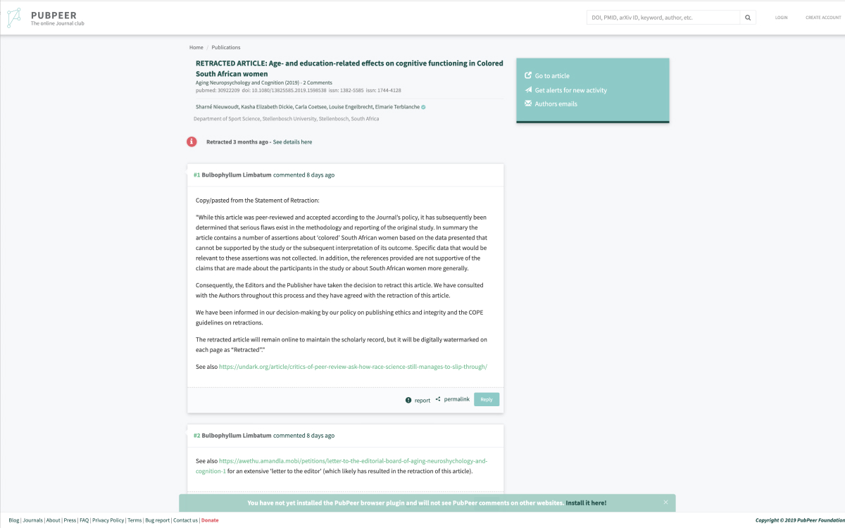PubPeer is a website that allows users to discuss and review scientific research.