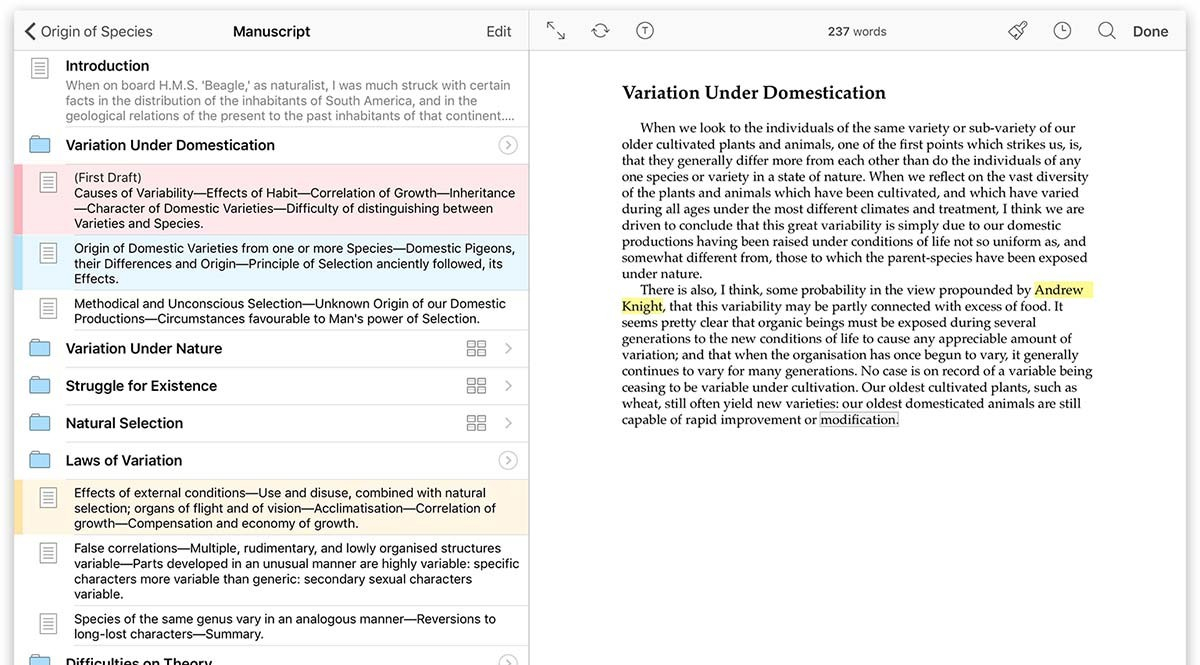 Scrivener is the go-to app for writers of all kinds, used every day by best-selling novelists, screenwriters, non-fiction writers, students, academics, lawyers, journalists, translators and more. Scrivener won't tell you how to write—it simply provides everything you need to start writing and keep writing.